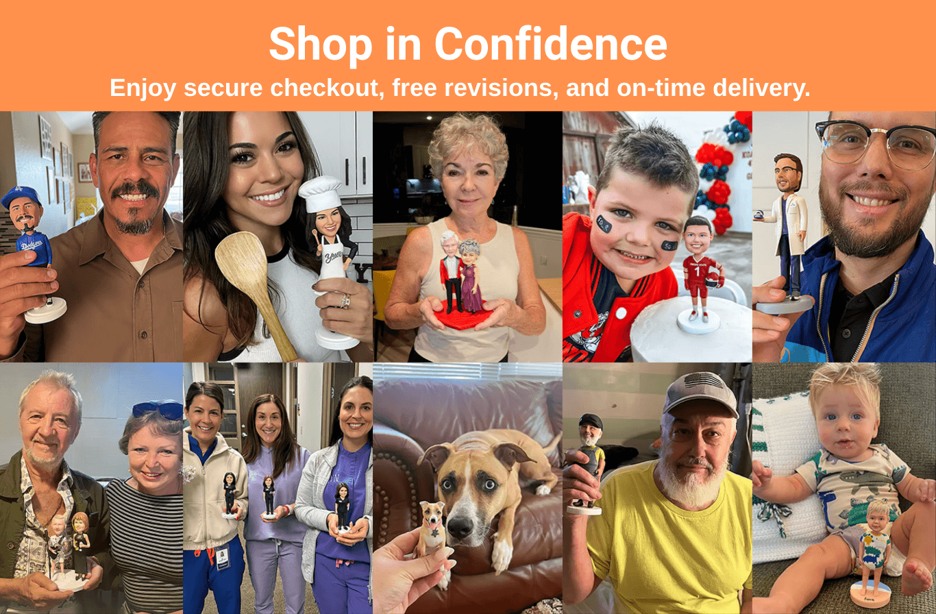 Our talented team of 10+ artisans, each with over 5 years of experience, brings unmatched skill and creativity to every custom bobblehead, ensuring a truly unique and professional result.